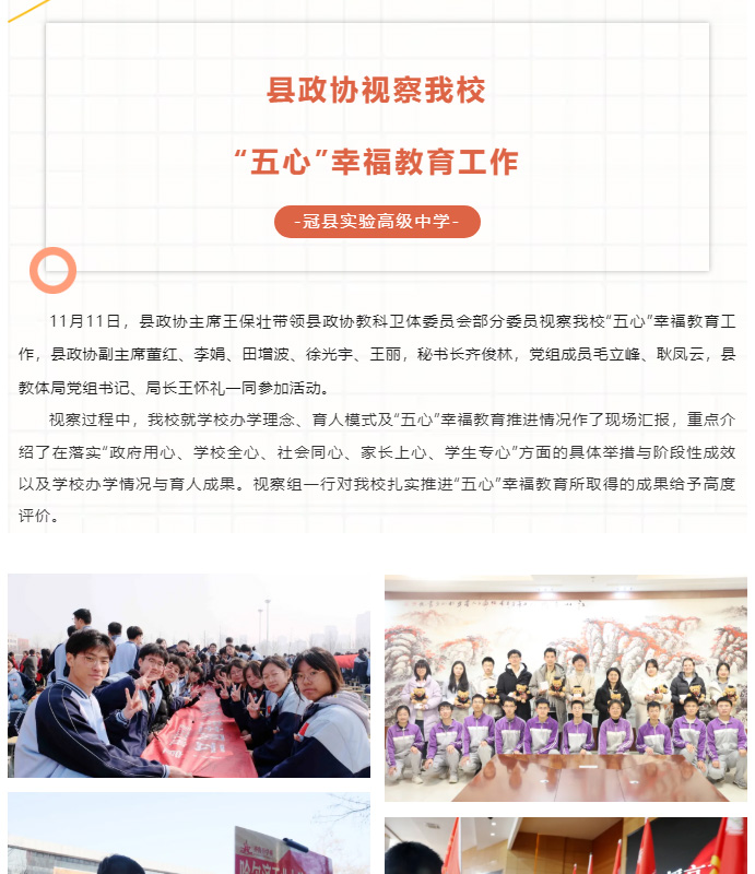 冠县政协视察冠县实高“五心”幸福教育工作