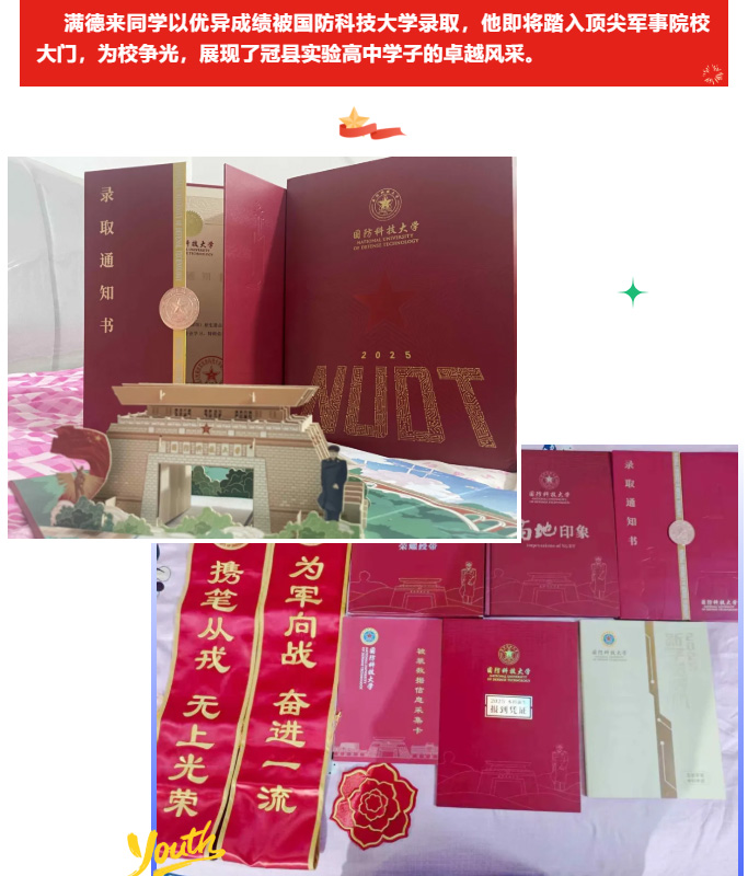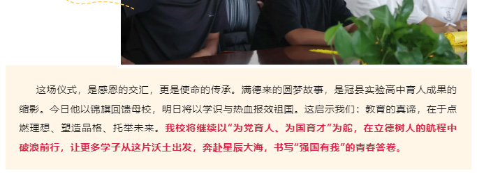 【冠县实高】2025届实高优秀毕业生满德来向学校赠送锦旗表达感谢!