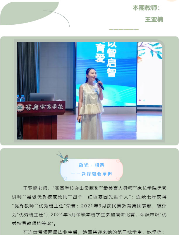 柔风甘雨化桃李,智慧管理爱无声——优秀教师王亚楠