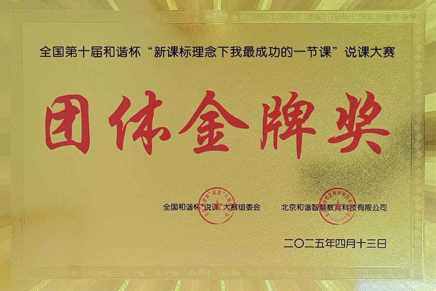 全国第十届和谐杯“新课标理念下我最成功的一节课”说课大赛团体金牌奖