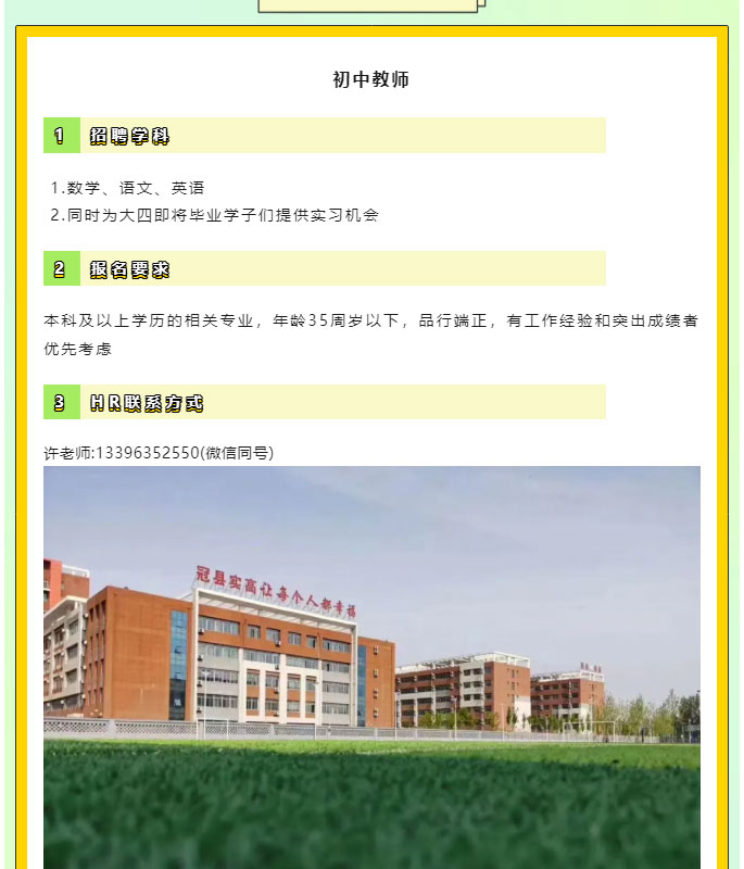 2025年冠县实高学校初中部招聘公告