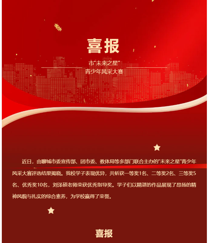 冠县实高小学部在市“未来之星”青少年风采大赛中荣获佳绩