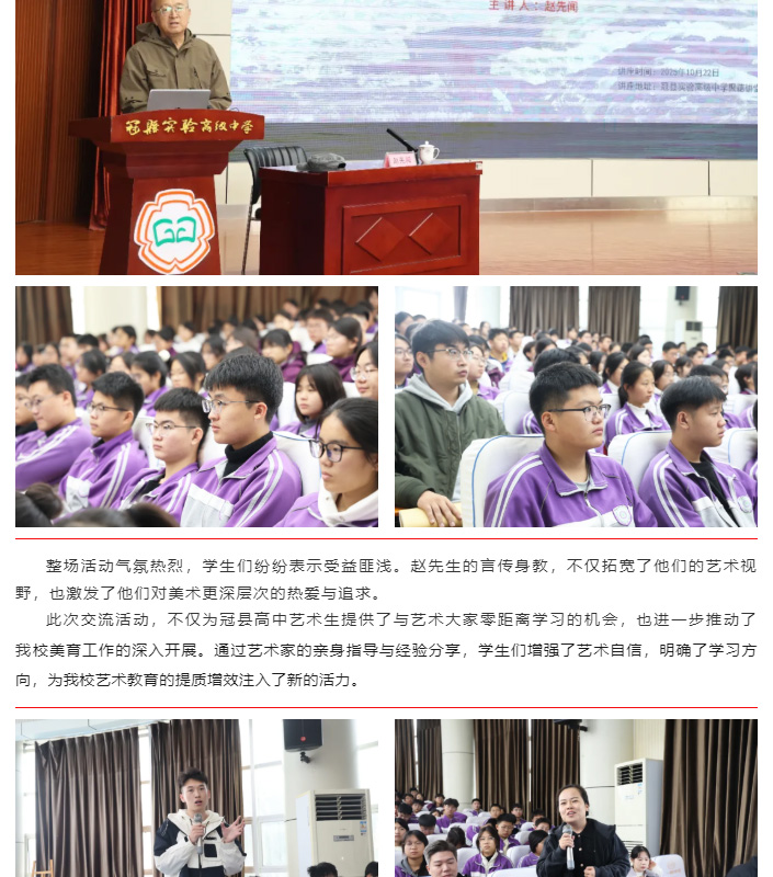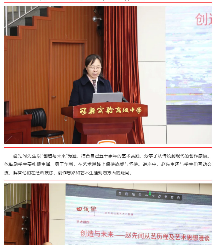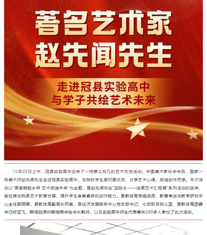 著名艺术家赵先闻先生走进冠县实验高中,与学子共绘艺术未来